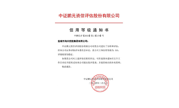 喜報(bào)!鹽城市海興控股集團(tuán)成功獲評(píng)AAA主體信用評(píng)級(jí)