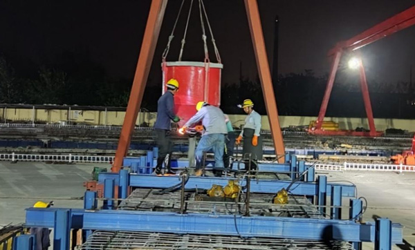 9月7日凌晨完成疏港航道大橋首件預制箱梁澆筑,為大橋段上部結構施工進度達序時做好堅強保障。2022-09-07 -